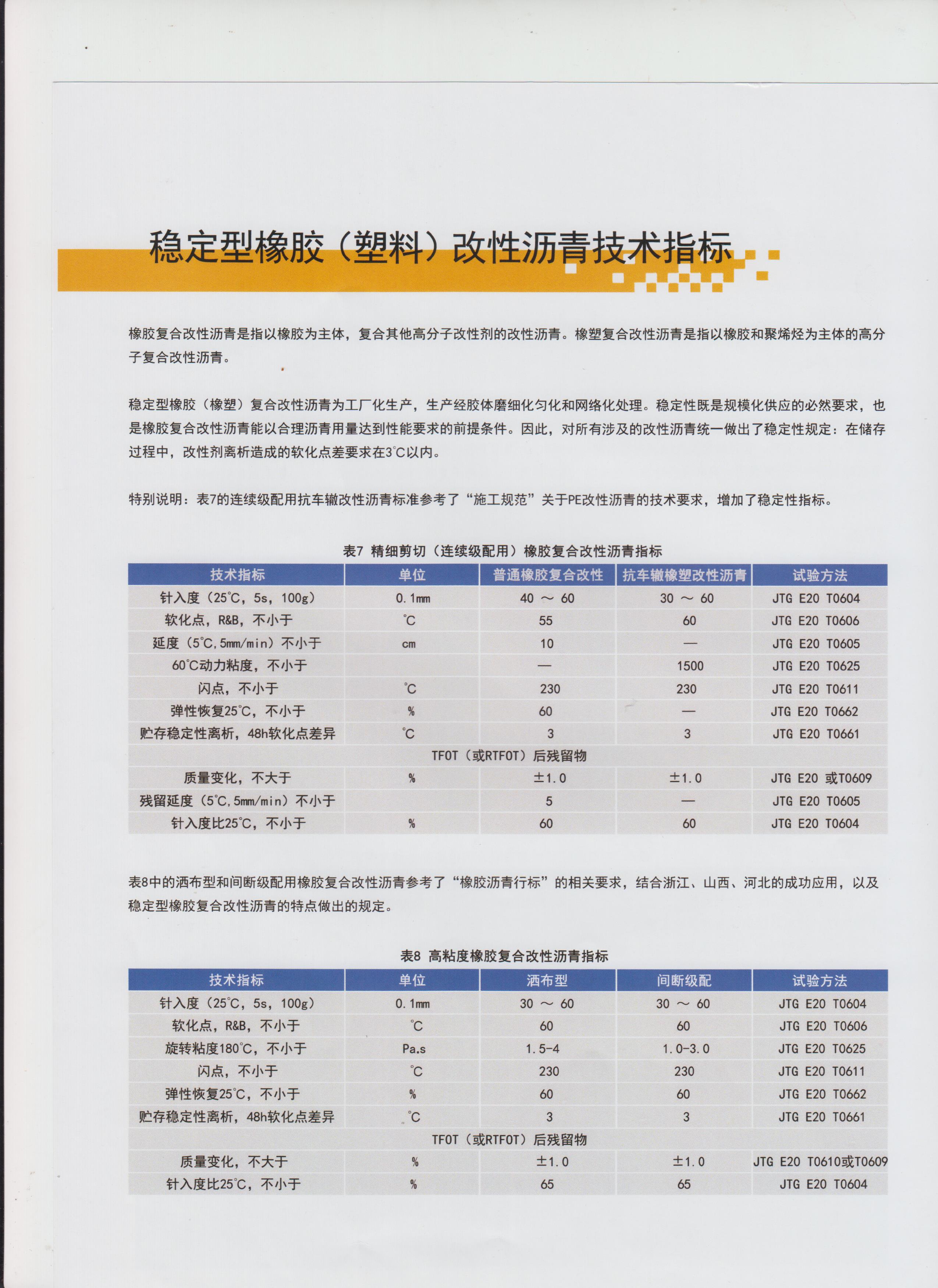 稳定型橡胶(塑料)改性沥青技术指标